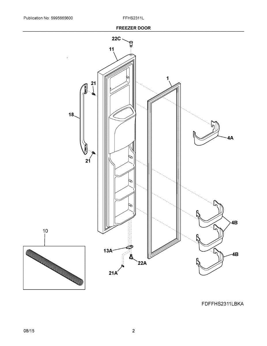 Parts for Frigidaire FFHS2311LBMA: 02 - Freezer Door Parts