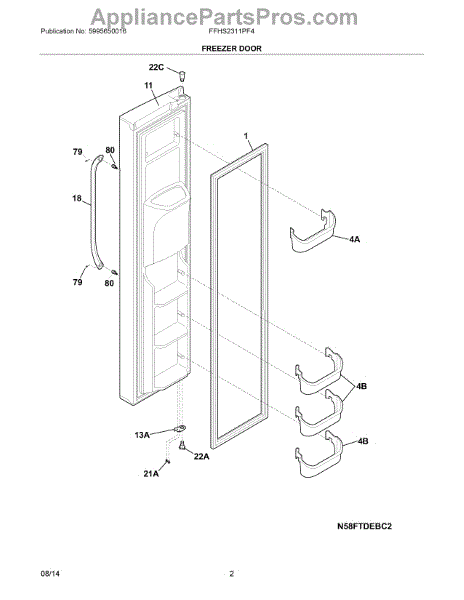 Parts for Frigidaire FFHS2311PF4: 02 - Freezer Door Parts