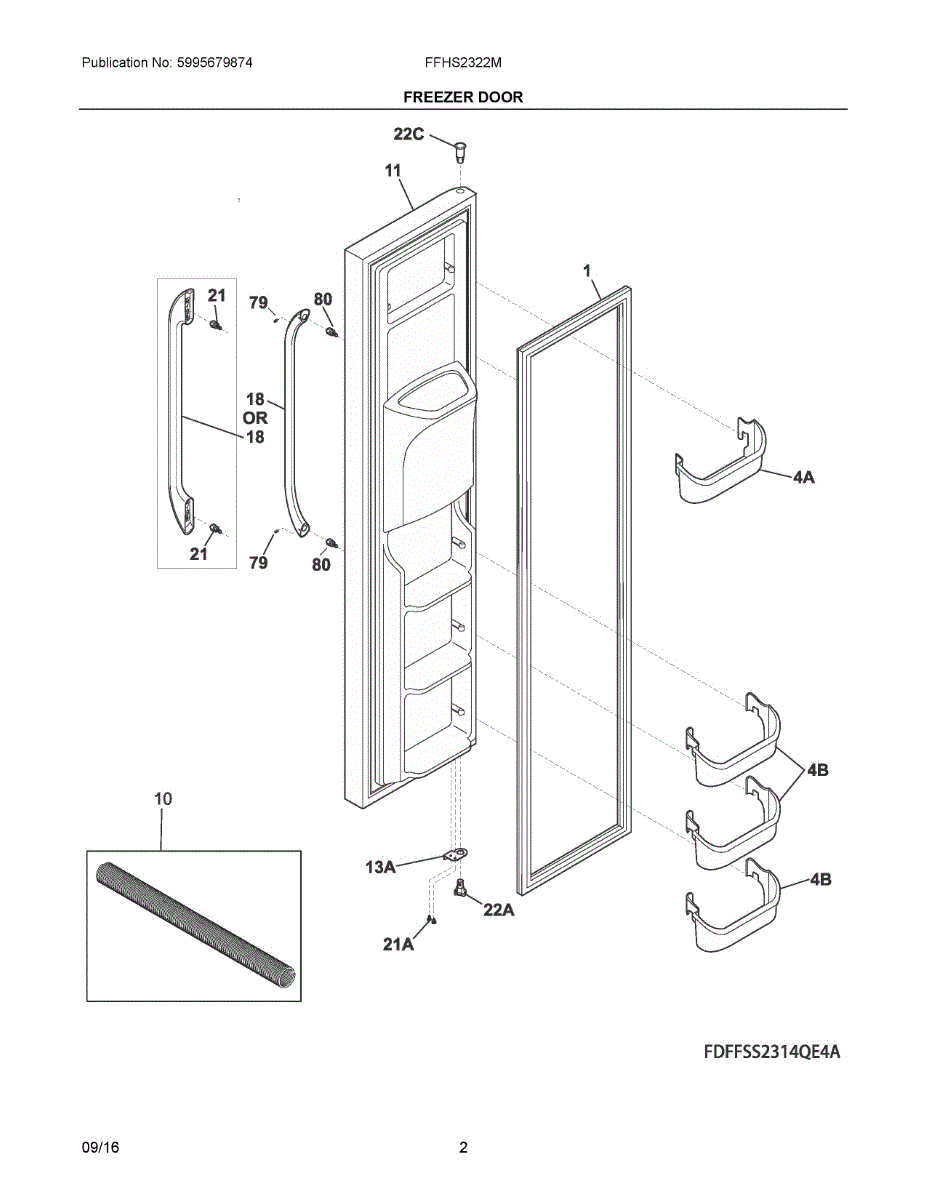 Parts for Frigidaire FFHS2322MWKA: 02 - Freezer Door Parts