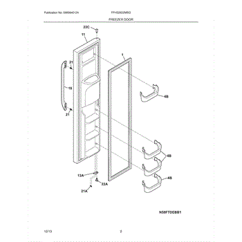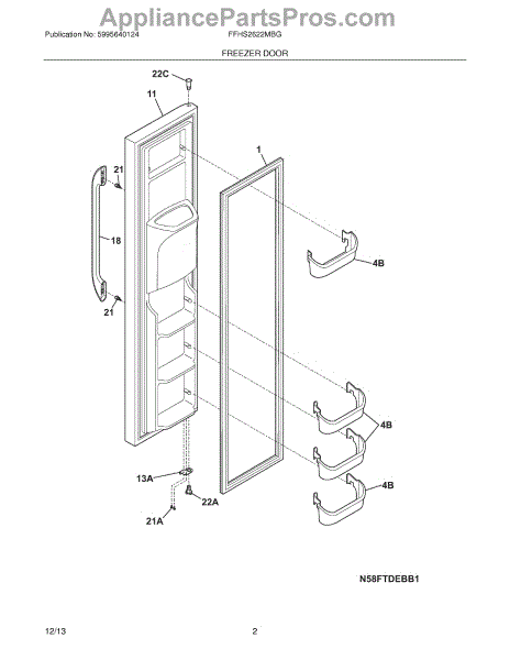 The Upper Freezer Door Bin is an OEM part for Frigidaire side-by-side refrigerators. It provides organized storage for freeze-sensitive items like ice cream in the freezer door. The door bin measures approximately 13"L x 5 1/2" W.
