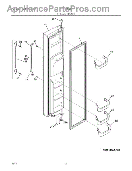 This freezer door gasket forms the airtight seal between the freezer door and cabinet. Replacing a worn or damaged seal helps keep cold air in, reduce frost buildup, and restore proper temperatures and efficiency.