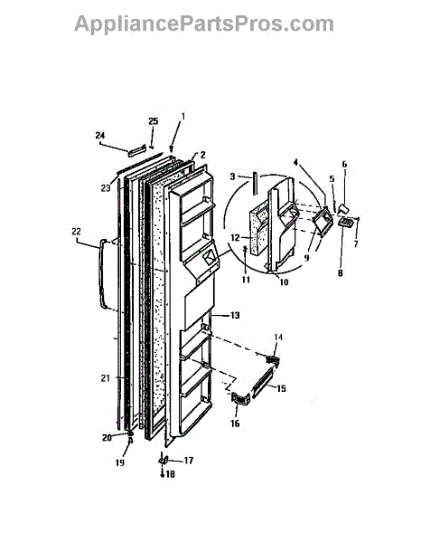 Refrigerator ice chute door that covers the ice dispenser opening. Replace this part if your current door is cracked, broken, or missing from the dispenser.