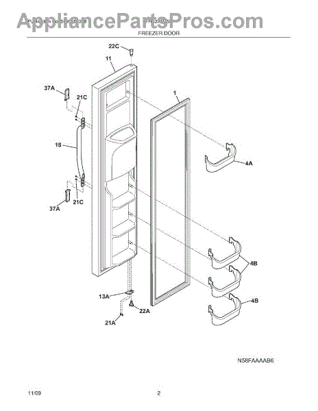 This replacement freezer door restores the freezer compartment's enclosure and appearance, helping maintain cold air retention and a proper seal. It's a like-for-like exterior door panel that replaces a damaged or worn freezer door. What it does: