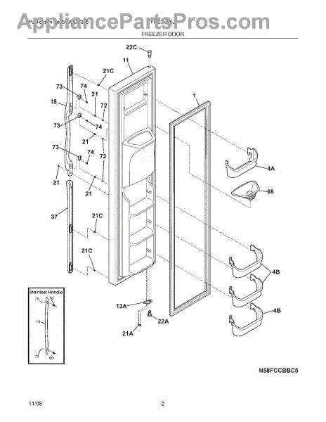 Secures door handle to refrigerator door. Replace if missing, stripped, rusted, or corroded from regular use. Essential hardware for handle installation.