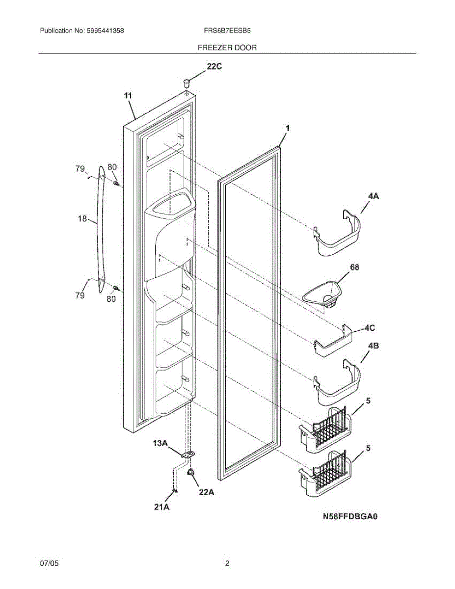 Parts for Frigidaire FRS6B7EESB5: 03 - Freezer Door Parts