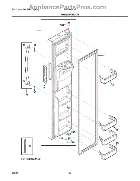The Handle is an OEM part for Frigidaire refrigerators. This part is responsible for providing a secure grip and facilitating the opening and closing of the refrigerator door.