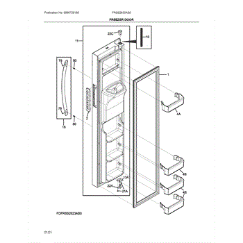 This door assembly replaces a damaged or worn outer door panel to restore seal integrity, appearance, and proper operation. It provides a ready-to-install outer door section that helps keep interior temperatures stable and improves energy efficiency. What it does:
