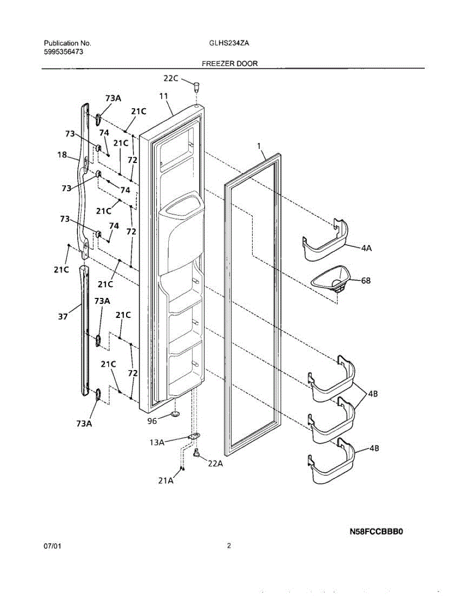 Parts for Frigidaire GLHS234ZAB1: 03 - Freezer Door Parts