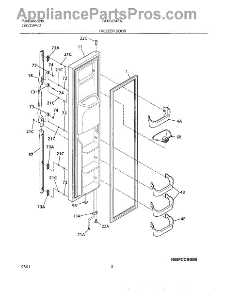 This upper freezer door bin replaces the molded storage bin that holds small frozen items on the freezer door, restoring secure storage and organization. Durable plastic construction matches the original fit and mounting points. What it does: