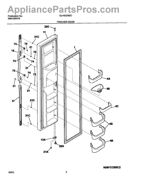 This upper freezer door bin replaces the molded storage bin that holds small frozen items on the freezer door, restoring secure storage and organization. Durable plastic construction matches the original fit and mounting points. What it does: