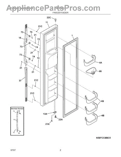 The Handle Mounting Block is an OEM part for Frigidaire refrigerators. This component anchors the refrigerator door handle assembly while also reinforcing the door structure. Causes of a bad mounting block can include cracks developing from repeated opening/closing stresses, broken fasteners loosening its installation, or residual damage during door replacement or repair attempts. Symptoms of a bad handle mounting block include: