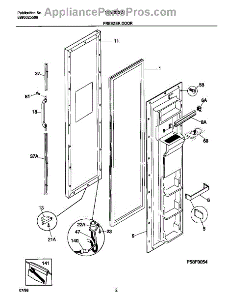 The Door Shelf Support is an OEM part for Frigidaire refrigerators. This part supports the door shelf, providing a sturdy base to hold various items such as bottles, jars, and condiments securely in place on the refrigerator door.