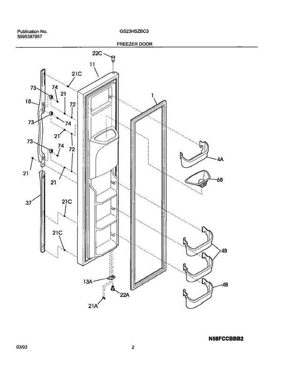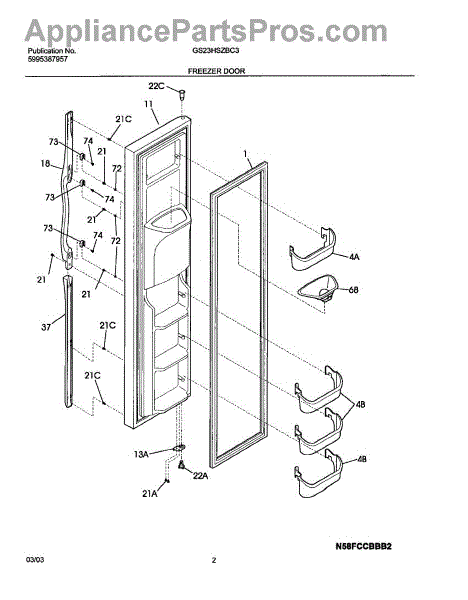 This upper freezer door bin replaces the molded storage bin that holds small frozen items on the freezer door, restoring secure storage and organization. Durable plastic construction matches the original fit and mounting points. What it does: