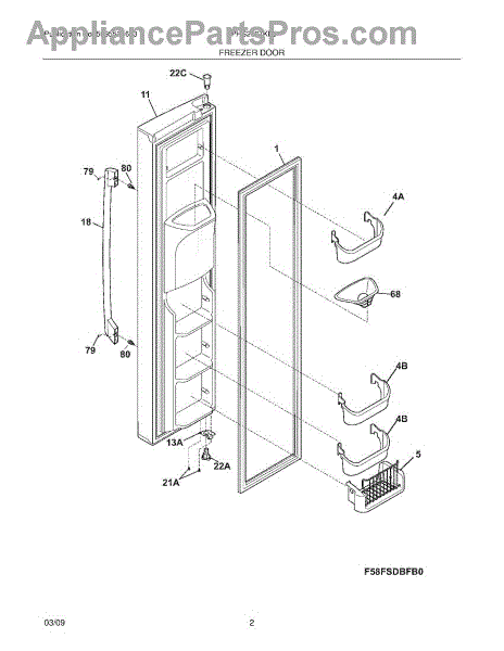 The Upper Freezer Door Bin is an OEM part for Frigidaire side-by-side refrigerators. It provides organized storage for freeze-sensitive items like ice cream in the freezer door. The door bin measures approximately 13"L x 5 1/2" W.