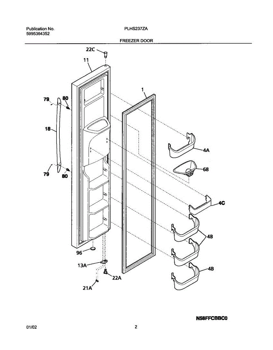 Parts for Frigidaire PLHS237ZAB1: 03 - Freezer Door Parts