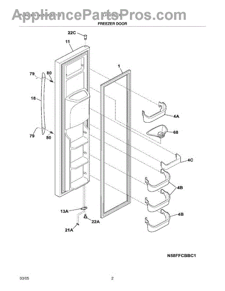 This upper freezer door bin replaces the molded storage bin that holds small frozen items on the freezer door, restoring secure storage and organization. Durable plastic construction matches the original fit and mounting points. What it does: