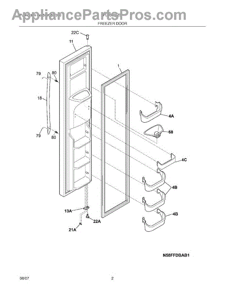 This upper freezer door bin replaces the molded storage bin that holds small frozen items on the freezer door, restoring secure storage and organization. Durable plastic construction matches the original fit and mounting points. What it does: