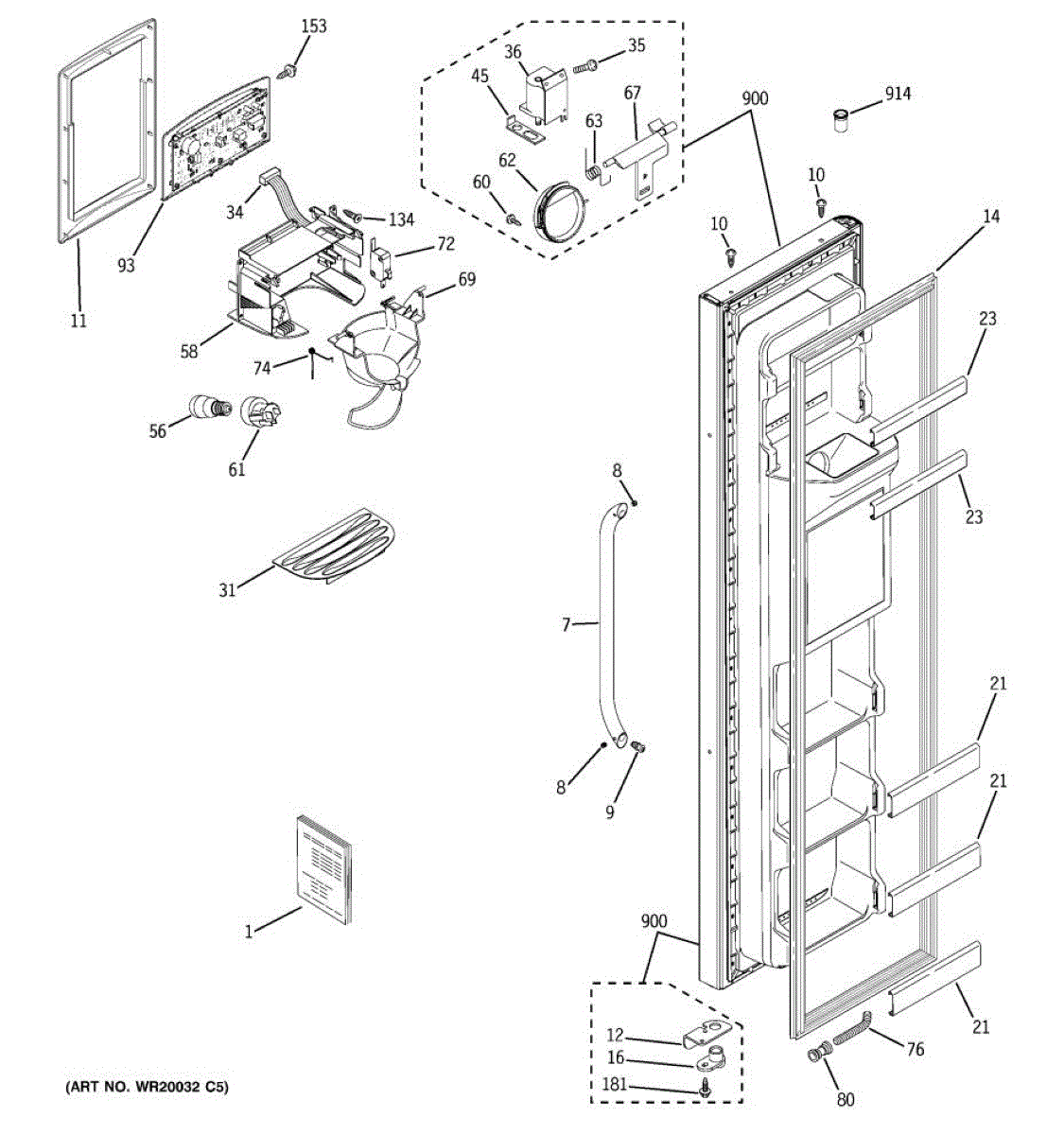 Ice dispenser door assembly seals the ice chute opening on your refrigerator. Replace if cracked, warped, or the rubber gasket is damaged and leaking air.