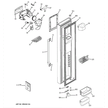 The Door Recess Spring is an OEM replacement part for GE side-by-side refrigerators. It sits within the icemaker door frame to control movement and allow smooth closing/opening of the access point.