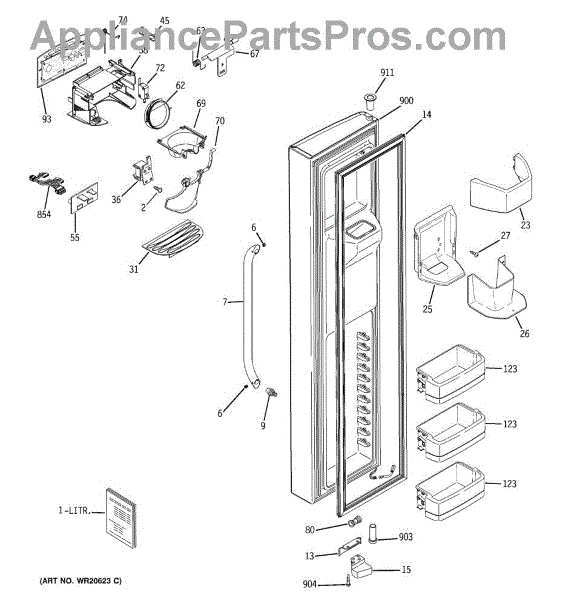 The Ice Dispenser Paddle is an OEM part for GE refrigerators. It is responsible for dispensing ice when you press your glass against the paddle in the dispenser area. This paddle activates the switch that releases ice from the ice maker to your cup or container. Over time, the ice dispenser paddle can become worn out or damaged due to frequent use, impact, or accidental mishandling. Symptoms of a bad ice dispenser paddle include: