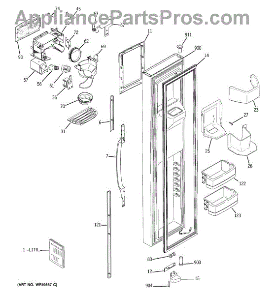 The Dispenser Lever is an OEM part for GE refrigerators. This lever activates the dispensing mechanism, allowing you to release water or ice from the refrigerator's dispenser.