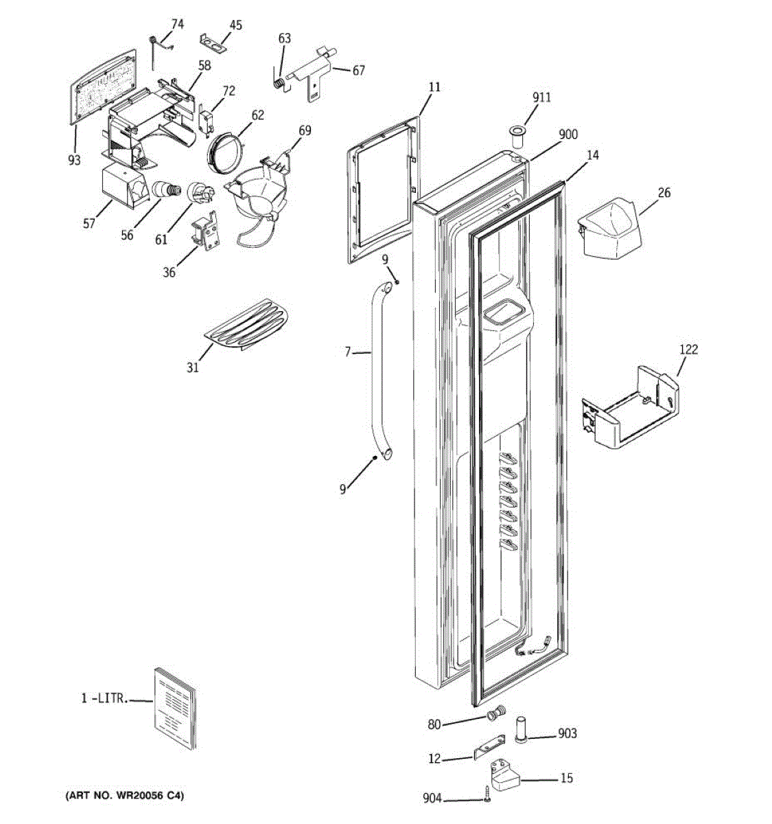 The Refrigerator Dispenser Arm Kit is an OEM component for GE French door refrigerator models. This kit contains the arm mechanism responsible for dispensing ice and water from the external dispenser tap. Proper functioning of the dispenser arm allows for effortless access to ice and water directly from the refrigerator door. Over time, cold temperatures, mineral deposits, and high usage can cause mechanical failure. Symptoms of a problematic refrigerator dispenser arm kit include: