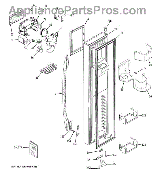 The Ice Door Assembly is an OEM part for GE refrigerators. It is integral to the ice dispenser system, controlling access to the ice chute. This component ensures the efficient delivery of ice cubes or crushed ice when activated and seals off the chute when not in use to maintain the freezer's temperature and prevent frost buildup.