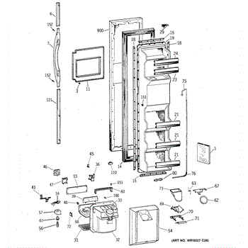 The Ice Door Assembly is an OEM part for GE refrigerators. It is integral to the ice dispenser system, controlling access to the ice chute. This component ensures the efficient delivery of ice cubes or crushed ice when activated and seals off the chute when not in use to maintain the freezer's temperature and prevent frost buildup.