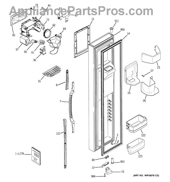 The Ice Door Assembly is an OEM part for GE refrigerators. It is integral to the ice dispenser system, controlling access to the ice chute. This component ensures the efficient delivery of ice cubes or crushed ice when activated and seals off the chute when not in use to maintain the freezer's temperature and prevent frost buildup.