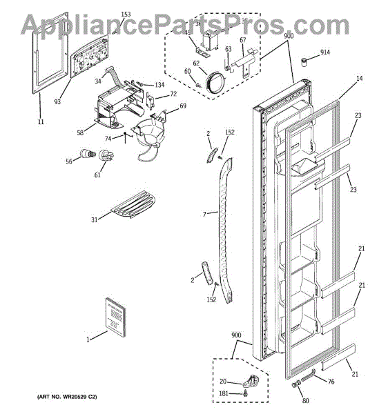 The Dispenser Lever is an OEM part for GE refrigerators. It is located on the front panel of the refrigerator and is responsible for activating the dispenser mechanism. When pressed, it engages the internal mechanisms to dispense ice or water into a glass or container.
