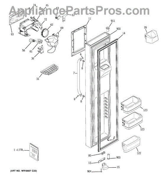 The Refrigerator Dispenser Arm Kit is an OEM component for GE French door refrigerator models. This kit contains the arm mechanism responsible for dispensing ice and water from the external dispenser tap. Proper functioning of the dispenser arm allows for effortless access to ice and water directly from the refrigerator door. Over time, cold temperatures, mineral deposits, and high usage can cause mechanical failure. Symptoms of a problematic refrigerator dispenser arm kit include: