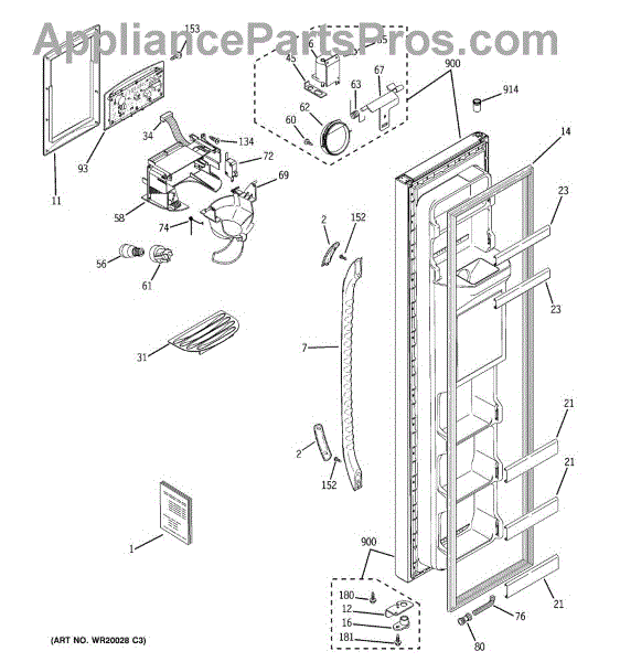 The Dispenser Housing Shield is an OEM part for GE refrigerators. This component plays a crucial role in protecting the internal mechanisms of the water and ice dispenser from damage and contamination. It ensures that the dispenser operates efficiently and maintains hygiene standards by shielding the delicate internal parts from debris and moisture.