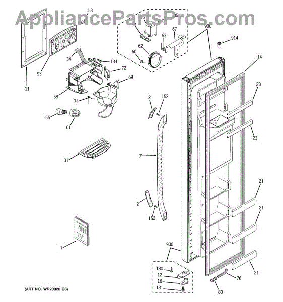 The Dispenser Housing Shield is an OEM part for GE refrigerators. This component plays a crucial role in protecting the internal mechanisms of the water and ice dispenser from damage and contamination. It ensures that the dispenser operates efficiently and maintains hygiene standards by shielding the delicate internal parts from debris and moisture.