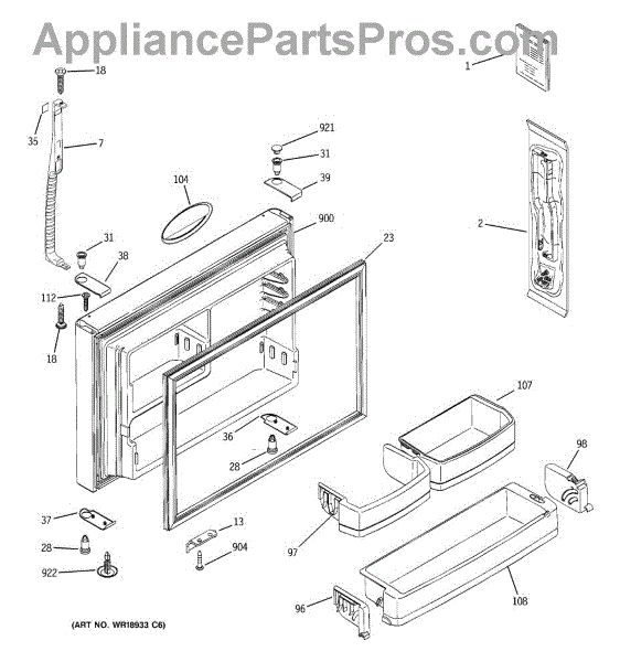Parts for Ge ETS22XBMBRBB: 01 - Freezer Door Parts