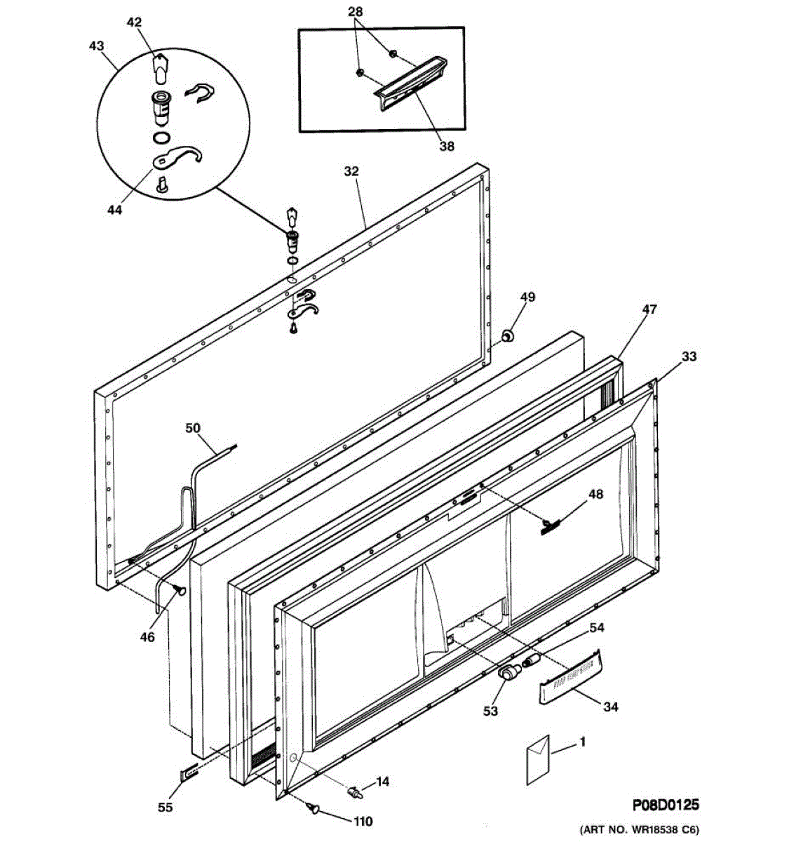 Parts for Ge FCM20DMAWH: 01 - Freezer Door Parts