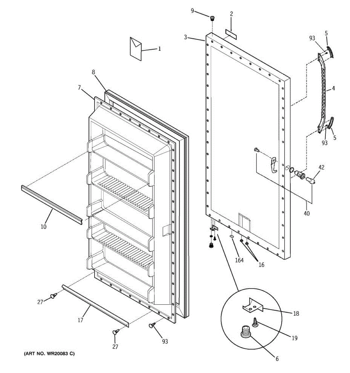 This inner door panel replaces a damaged or worn freezer interior surface to restore proper bin mounting and appearance. It provides the structural backing for door shelves and helps maintain a tight interior arrangement. What it does: