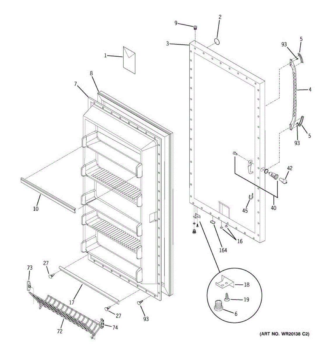 This inner door panel replaces a damaged or worn freezer interior surface to restore proper bin mounting and appearance. It provides the structural backing for door shelves and helps maintain a tight interior arrangement. What it does: