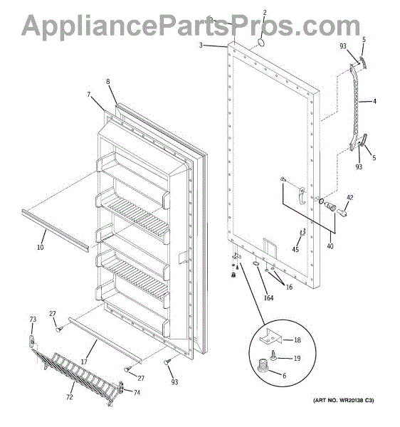 This inner door panel replaces a damaged or worn freezer interior surface to restore proper bin mounting and appearance. It provides the structural backing for door shelves and helps maintain a tight interior arrangement. What it does: