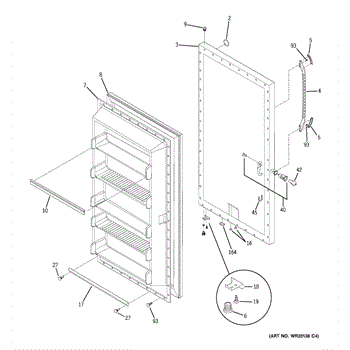 This inner door panel replaces a damaged or worn freezer interior surface to restore proper bin mounting and appearance. It provides the structural backing for door shelves and helps maintain a tight interior arrangement. What it does: