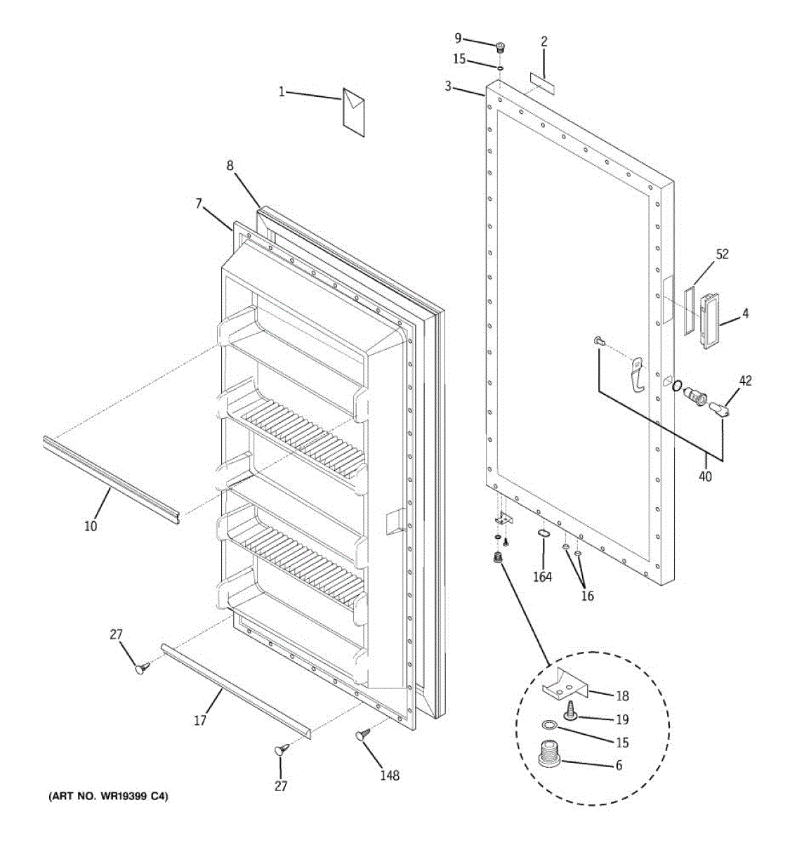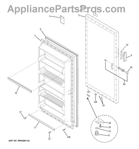 Parts for Ge FUF17DPFRWH: 01 - Freezer Door Parts