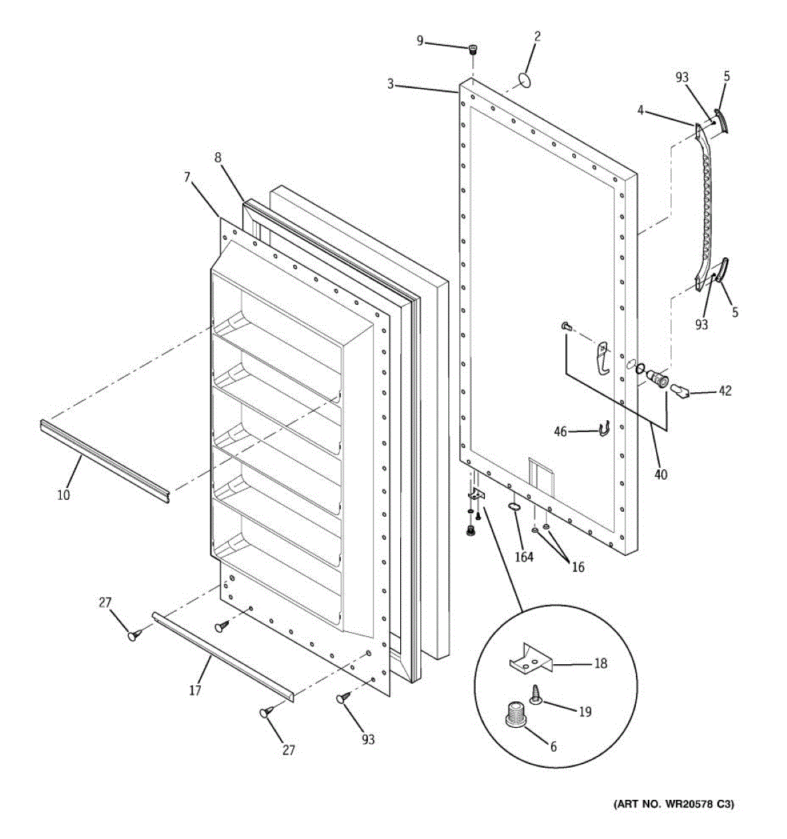 Replaces cracked or damaged inner door panels on freezers. This structural component installs inside the freezer door to restore appearance and integrity.
