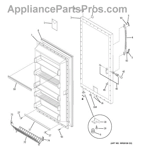 Parts for Ge FUF20SUARWW: 01 - Freezer Door Parts