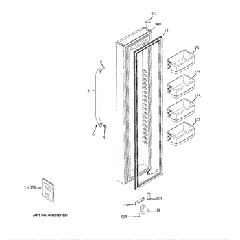 The Freezer Door Lower Hinge Bushing is an OEM replacement part for GE refrigerators. It is a component located within the freezer door hinge. Causes of failure typically involve normal wear over extended use. Refrigerator doors experience frequent adjustment which can deteriorate hinge bushings. Symptoms of a bad lower hinge bushing include: