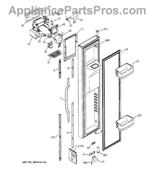 The Ice Door Assembly is an OEM part for GE refrigerators. It is integral to the ice dispenser system, controlling access to the ice chute. This component ensures the efficient delivery of ice cubes or crushed ice when activated and seals off the chute when not in use to maintain the freezer's temperature and prevent frost buildup.