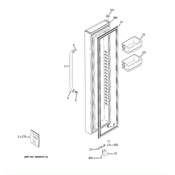 The Freezer Door Gasket is an OEM replacement part for GE refrigerators. It creates a tight seal around the perimeter of the freezer door frame.