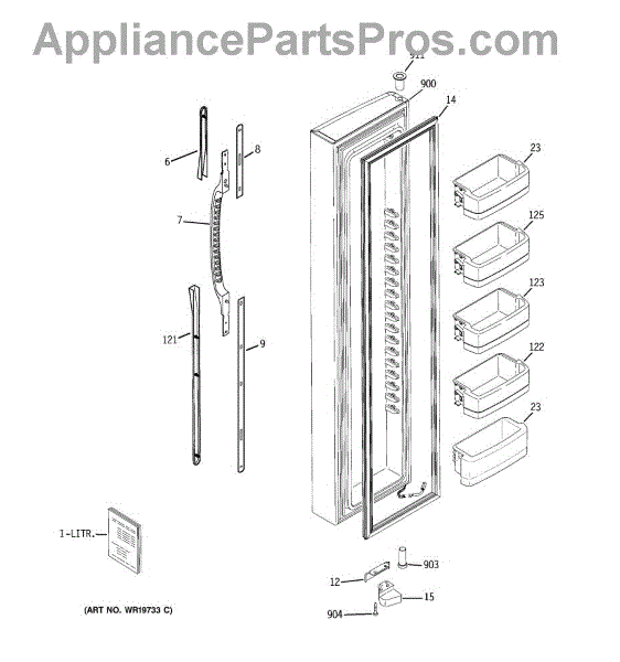 The Freezer Door Lower Hinge Bushing is an OEM replacement part for GE refrigerators. It is a component located within the freezer door hinge. Causes of failure typically involve normal wear over extended use. Refrigerator doors experience frequent adjustment which can deteriorate hinge bushings. Symptoms of a bad lower hinge bushing include: