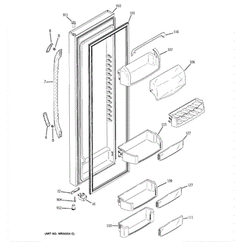 The Door Bin is an OEM part for GE refrigerators. It is a convenient storage compartment located on the interior of the refrigerator door, designed to hold and organize smaller items such as condiments, jars, or beverages.