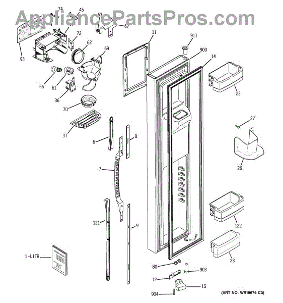 The Ice Door Assembly is an OEM part for GE refrigerators. It is integral to the ice dispenser system, controlling access to the ice chute. This component ensures the efficient delivery of ice cubes or crushed ice when activated and seals off the chute when not in use to maintain the freezer's temperature and prevent frost buildup.