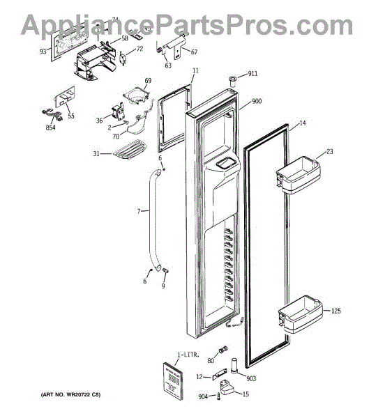 The Door Recess Spring is an OEM replacement part for GE side-by-side refrigerators. It sits within the icemaker door frame to control movement and allow smooth closing/opening of the access point.