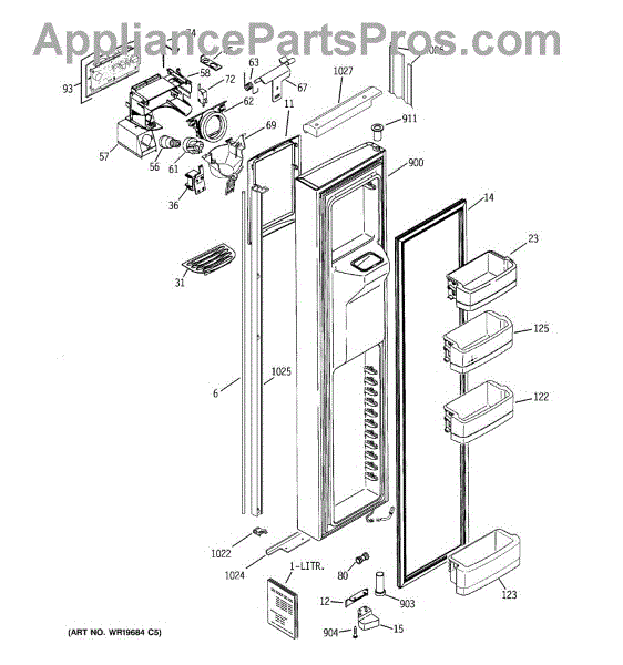 The Refrigerator Dispenser Arm Kit is an OEM component for GE French door refrigerator models. This kit contains the arm mechanism responsible for dispensing ice and water from the external dispenser tap. Proper functioning of the dispenser arm allows for effortless access to ice and water directly from the refrigerator door. Over time, cold temperatures, mineral deposits, and high usage can cause mechanical failure. Symptoms of a problematic refrigerator dispenser arm kit include: